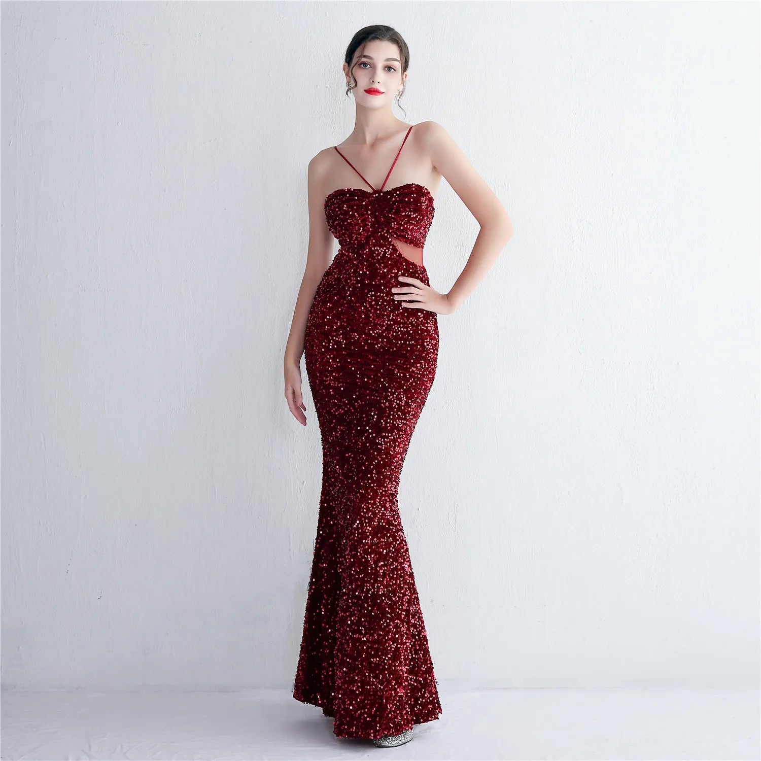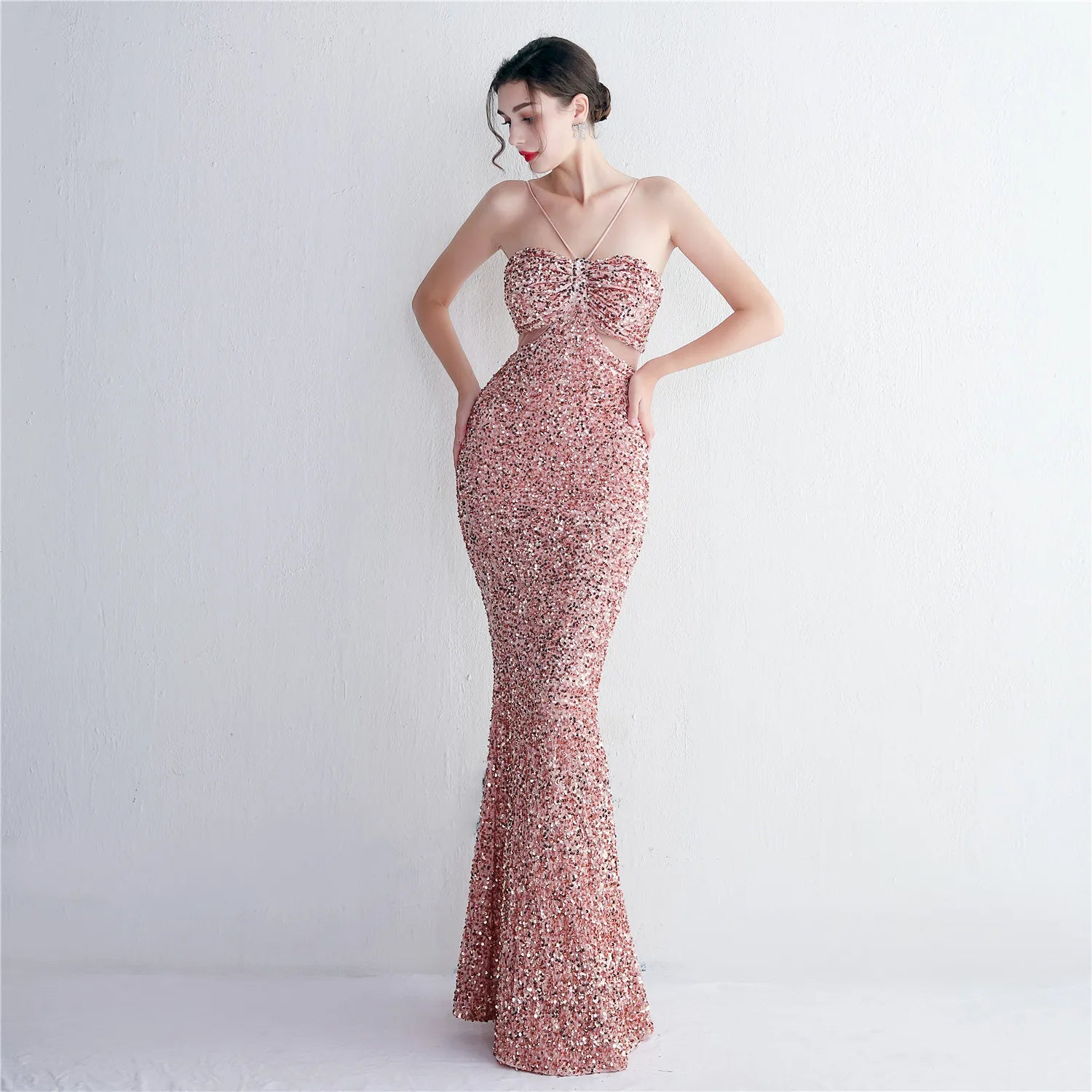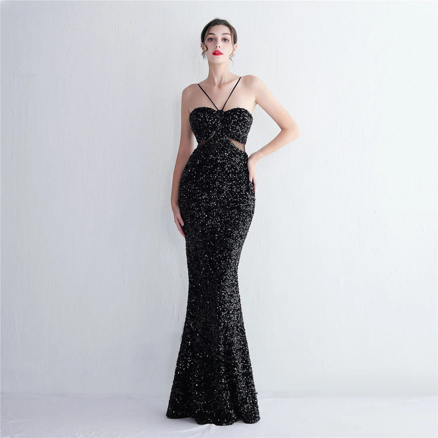 This fabulous gown is party perfect with its stylish halter neck and figure flattering mermaid silhouette