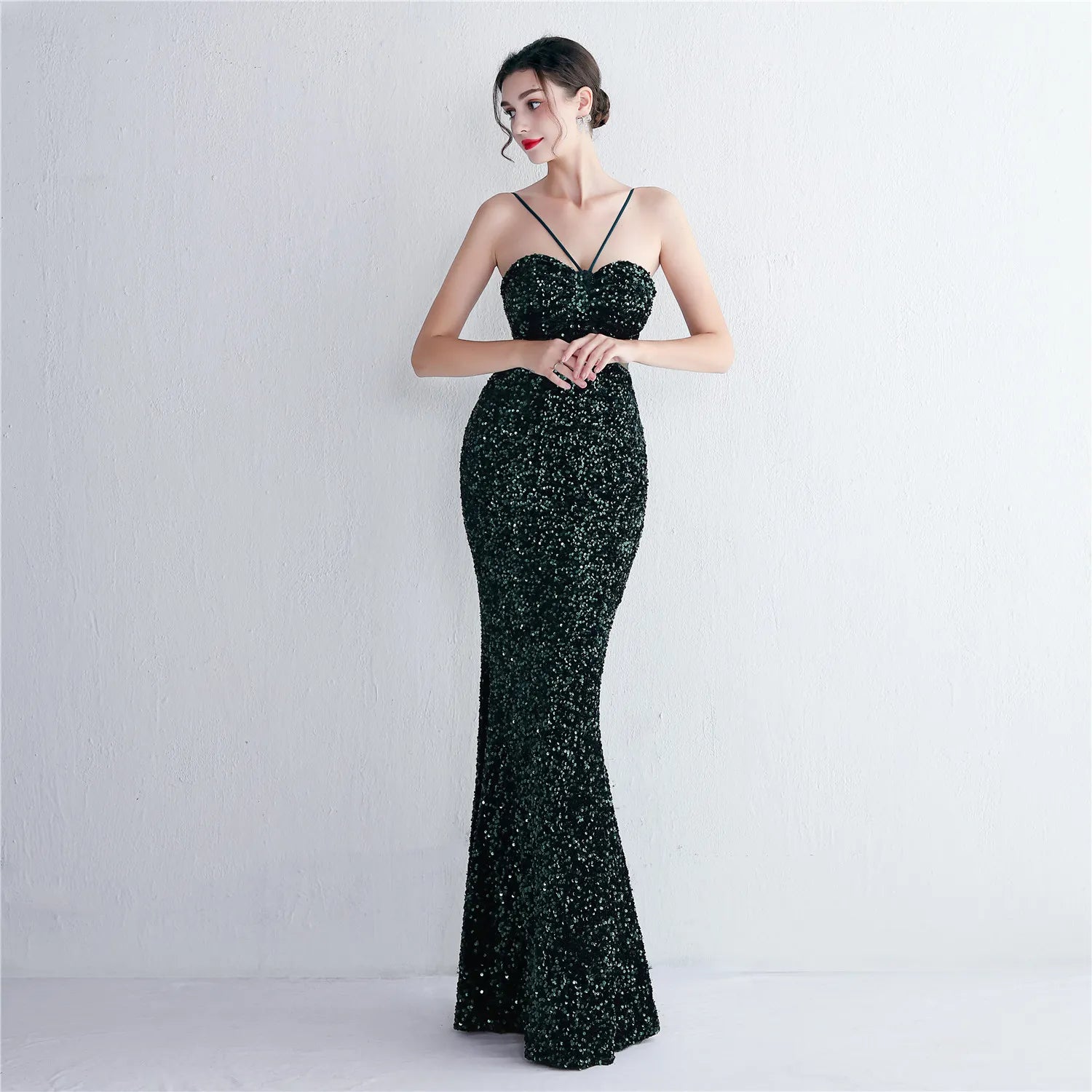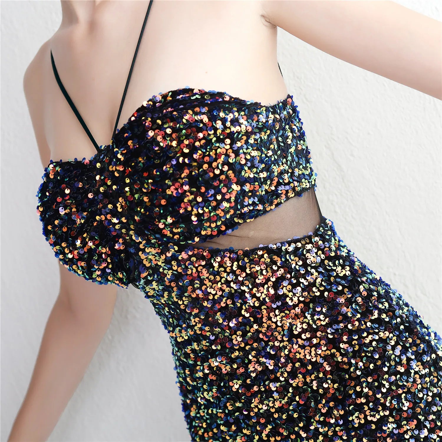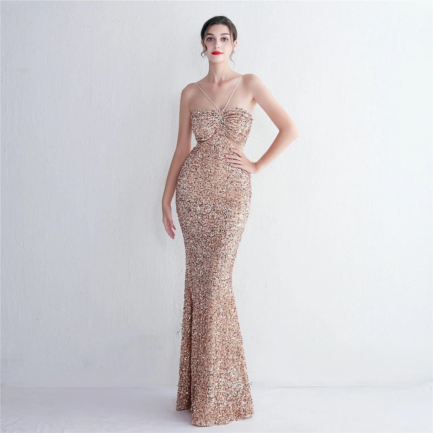 This fabulous gown is party perfect with its stylish halter neck and figure flattering mermaid silhouette