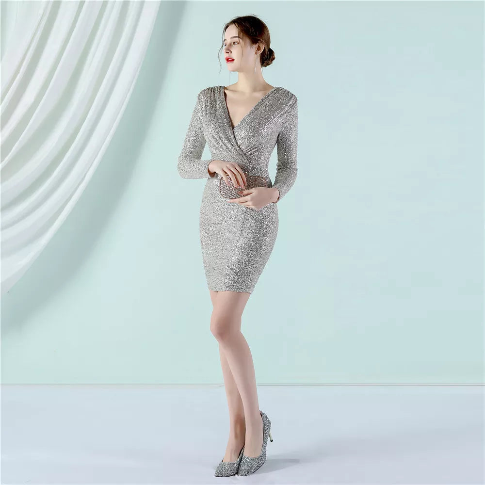 This party perfect dress has long sleeves and a bodycon silhouette.